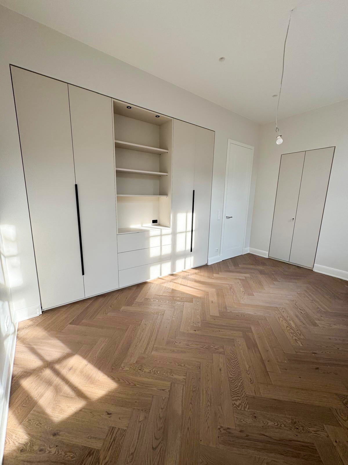 Dieser maßgefertigte Schrank in einer Nische zeigt, wie modern und elegant individuelle Lösungen wirken können: