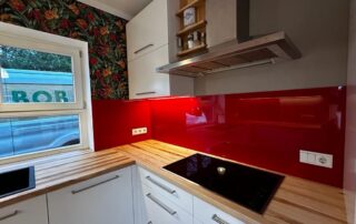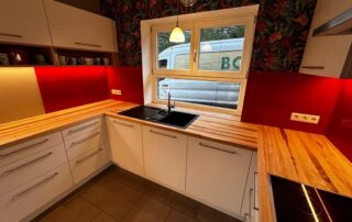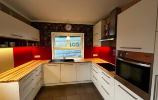 Diese moderne Einbauküche verbindet zeitloses Design mit kräftigen Farbakzenten. Die [...]
